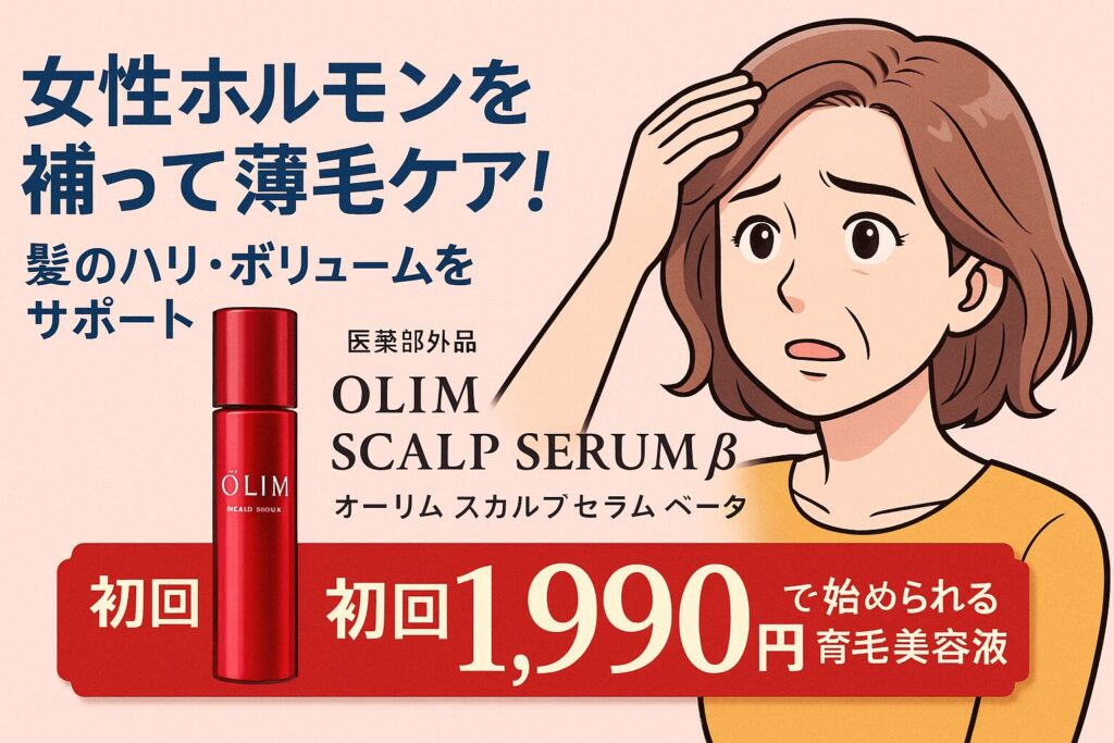 そんな女性のために作られたのが、今回紹介する医薬部外品の育毛美容液「オーリムスカルプセラムβ」です。